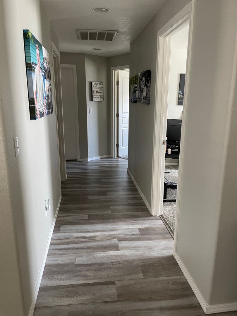 -Upgraded laminate flooring, and brand new carpet in bedrooms