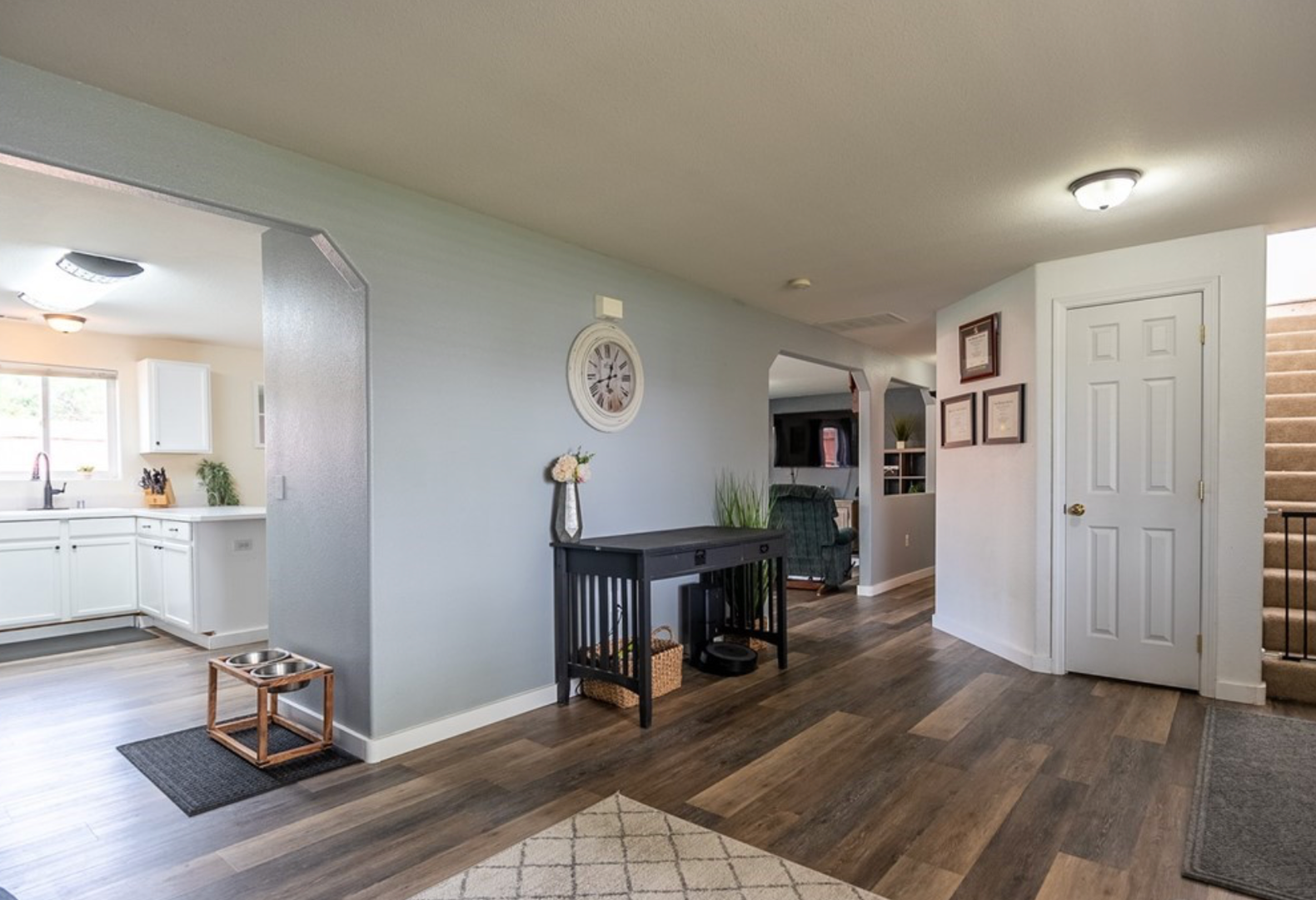 4 bedroom 2.5 bathroom home located close to downtown on the South side of Moses Lake. Exterior features include: mature landscaping with underground sprinklers, 2 car garage, fenced backyard, concrete back patio, LVP Flooring, painted kitchen cabinets, barn door over pantry, laundry & 1/2 bath on main, kitchen appliances included, central heat/air. Pet Friendly with fees, 2 pet max, Tenant pays WSG, GCPUD & Gas. *Furnishings not included*