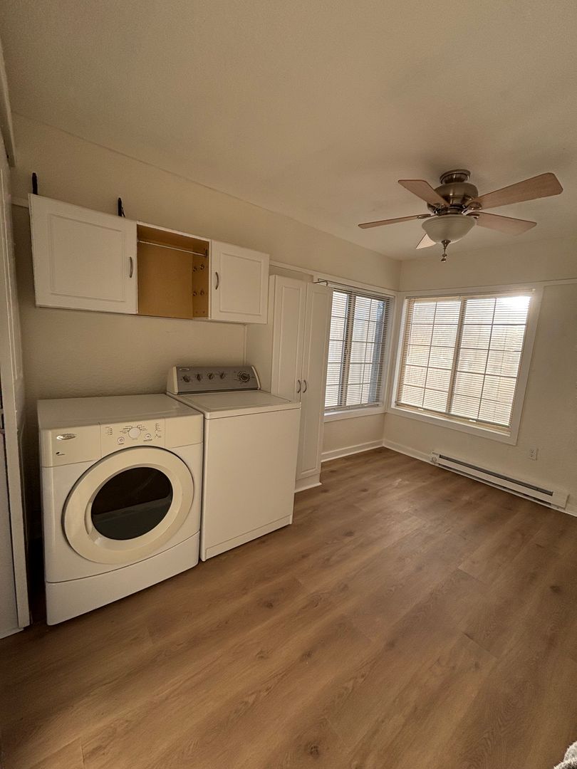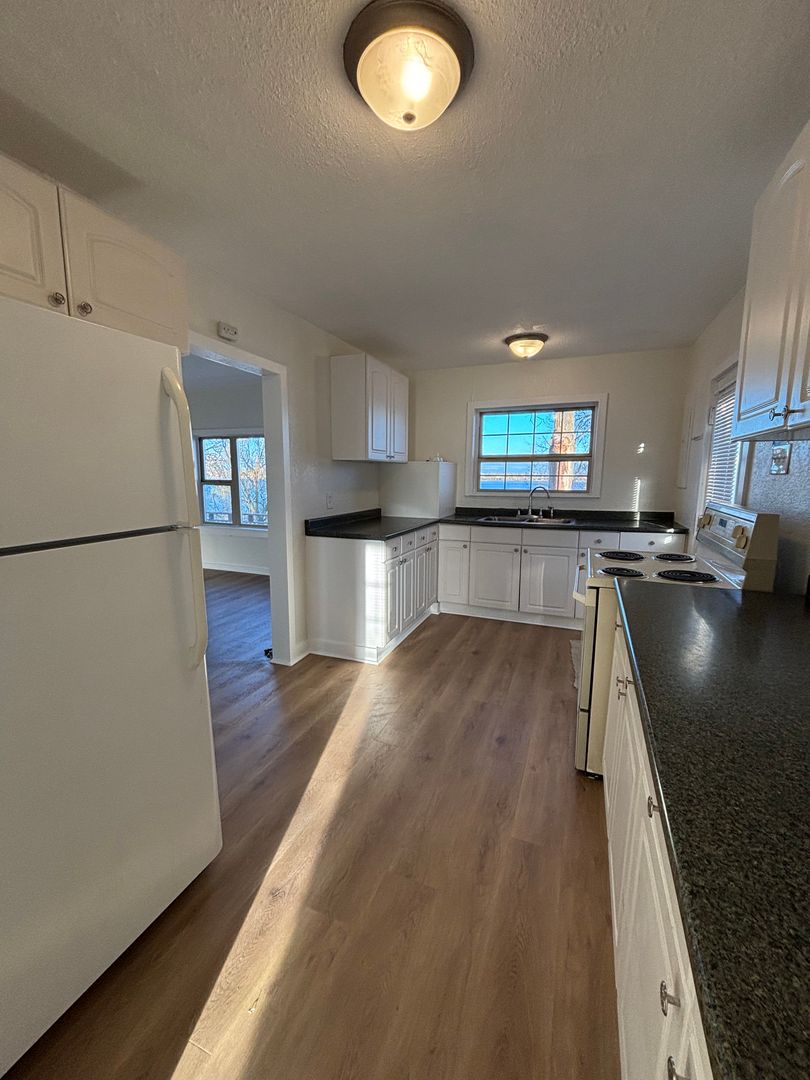 Cozy up in a lakefront 2 bedroom, 1 bath house with deck overlooking the lake and private dock access. Property is freshly painted, new LVP flooring throughout, and new closet/storage system in laundry area! Washer and Dryer included. Single car detached garage with automatic opener. All utilities (electricity, garbage, sewer, etc) tenant responsibility, property on community well. Baseboard heat, wall AC. Landscaping included for additional $225 charge per month. Tenant responsible for watering grass. 6 month lease. NO PETS. Renters insurance required.